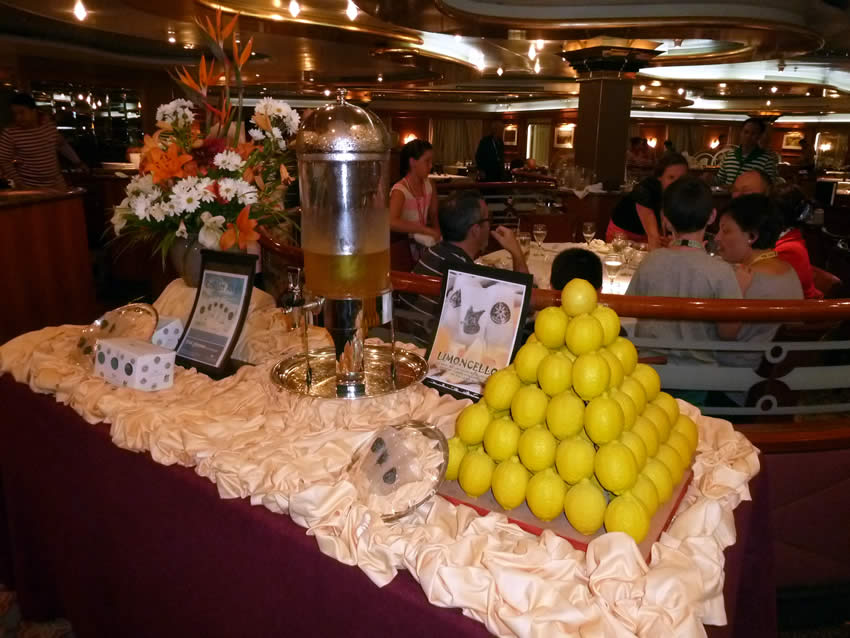 Beppe Castino is the Maitre D'Hotel and he looks after 158 staff being waiters and stewards, while Amedeo Scarin is the Executive Chef has 147 staff, butchers, bakers, pastry cooks, dishwashers, an ice carver and galley helpers.